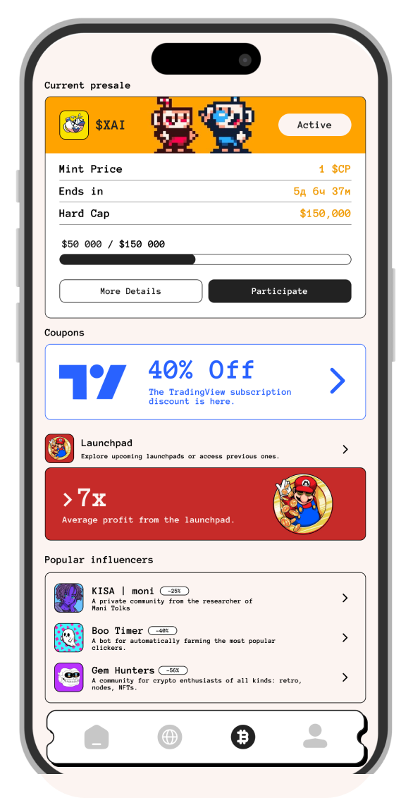 We offer users a unique opportunity to access advantageous deals, as well as exclusive content and investment opportunities within the WEB 3.0.
